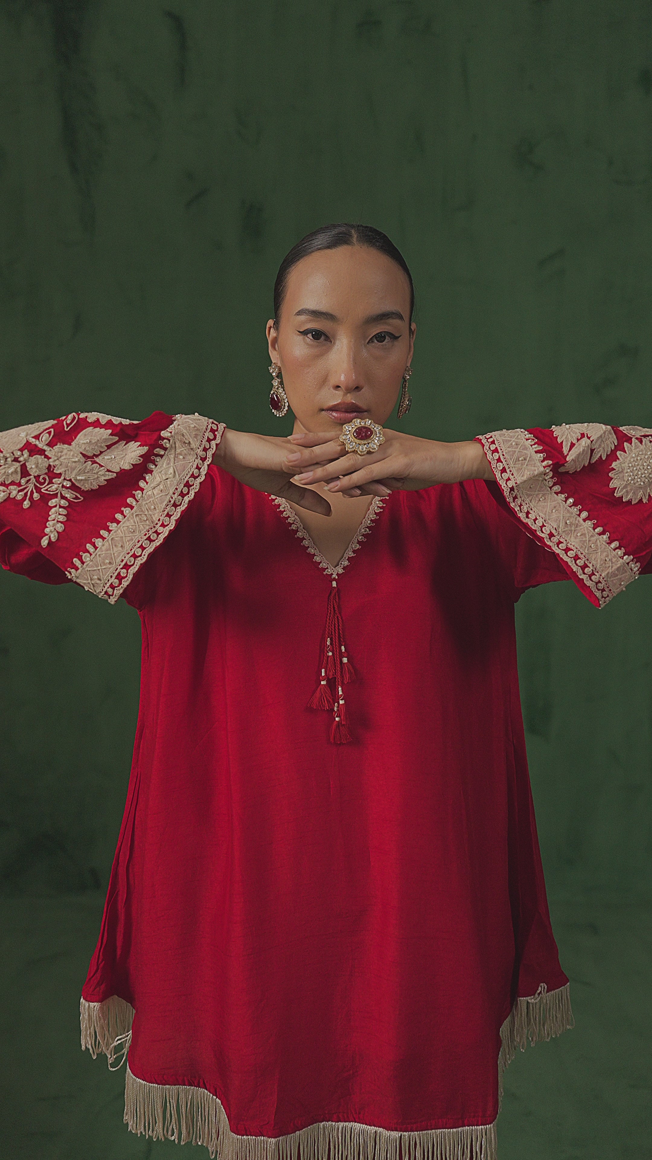 Honey Gold Embellished Chinon Silk Kaftan Co-Ord Set