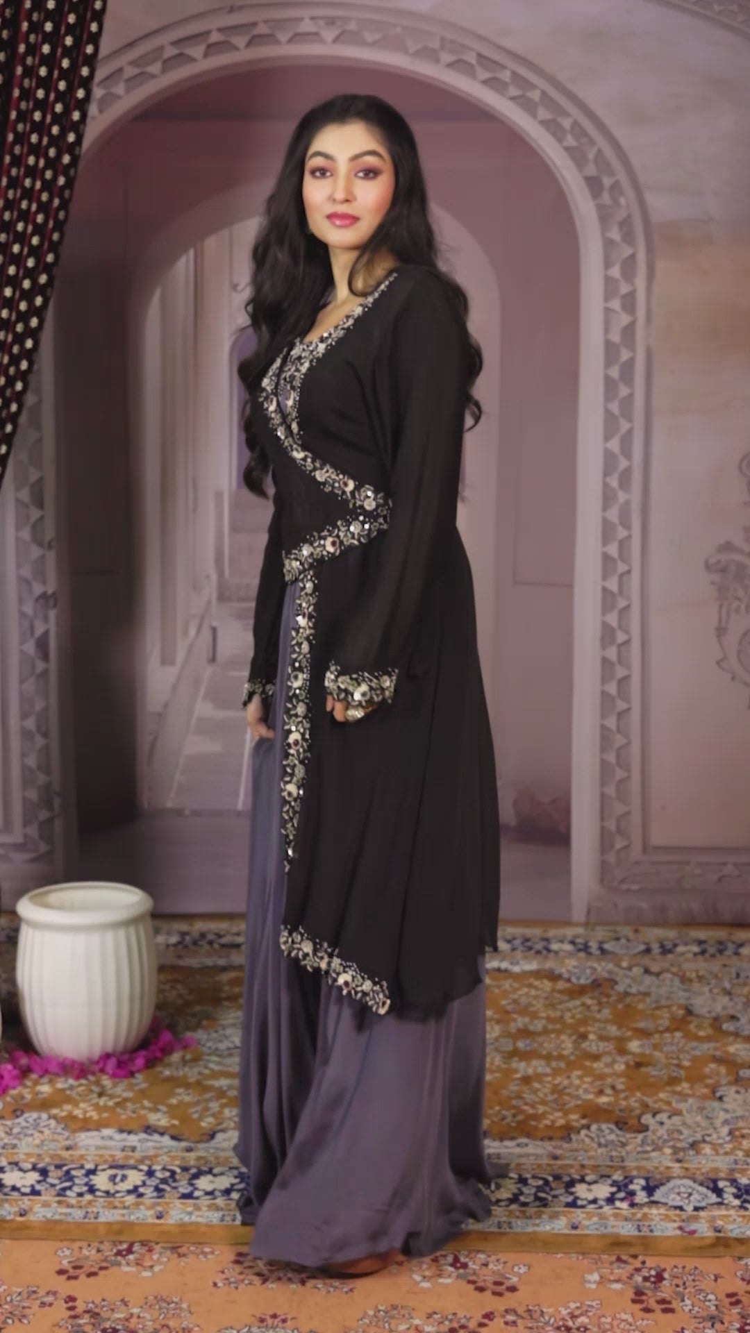 Introducing our Black Embellished Chinon Silk Gown. This stunning piece showcases intricate thread, sequins, stones and aari tari handwork, along with exquisite cut dana embroidery. Perfect for elegant events, this gown is a must-have for your wardrobe.