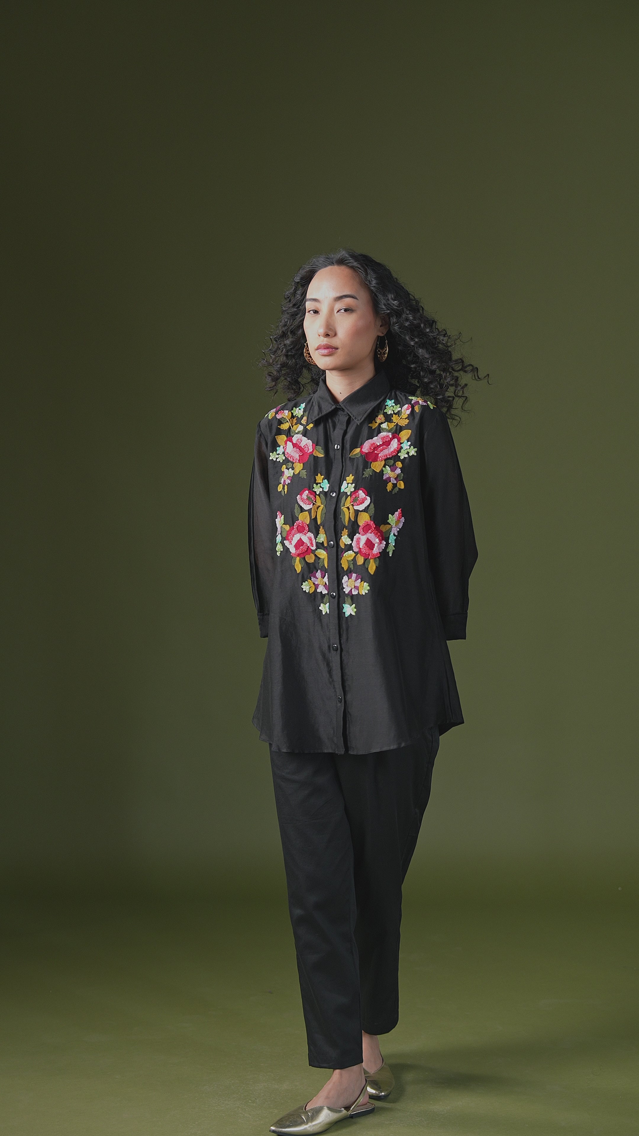 Black Embroidered Premium Silk Co-Ord Set