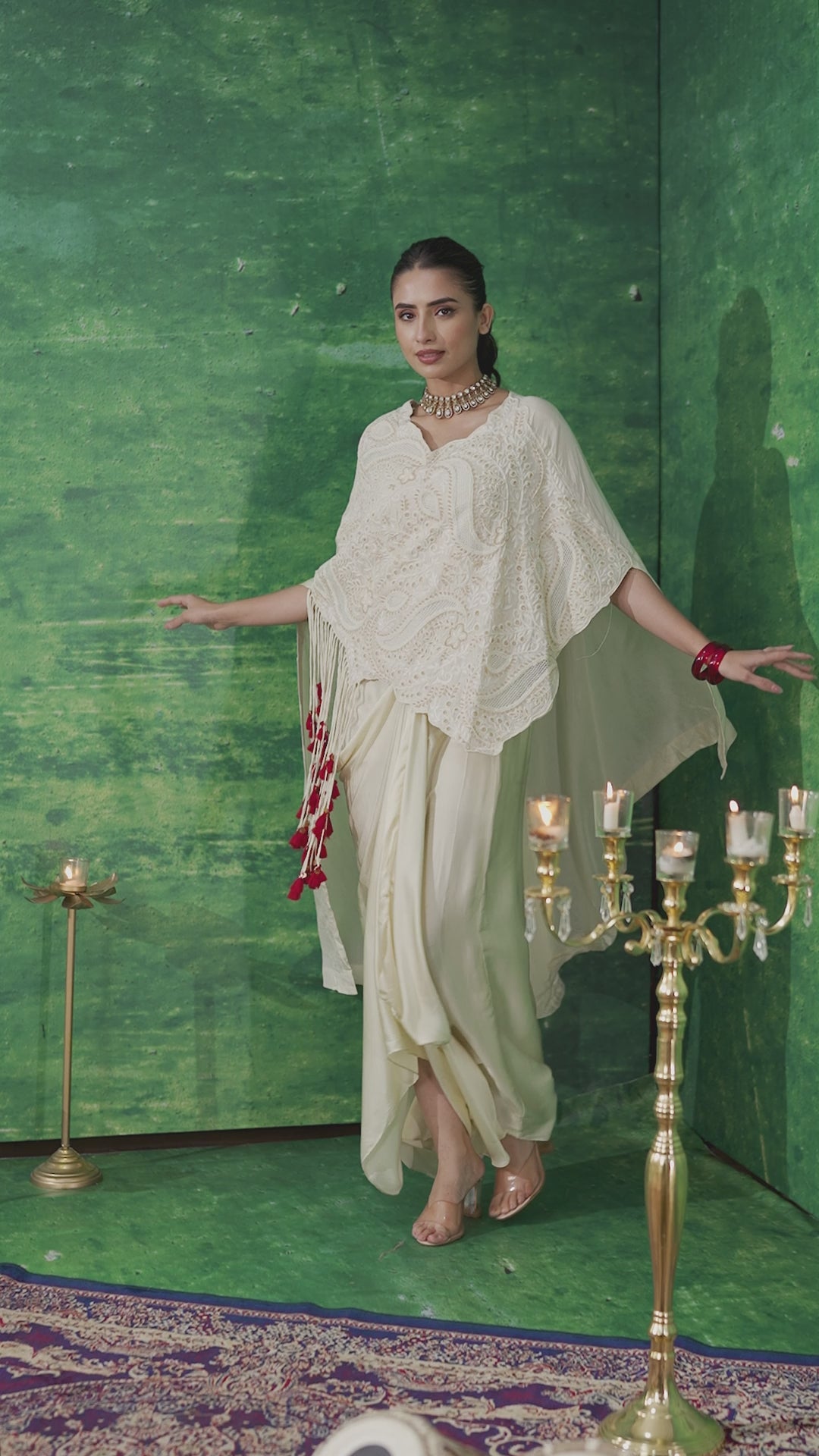 Introducing our Bright Cream Embroidered Spanish Silk Skirt Set. This stunning ensemble features a high-low tunic adorned with intricate sequins, beads, and thread tassels, adding a touch of elegance to any occasion. It comes with a matching solid satin silk draped skirt and a chic solid crop top, making it perfect for semi-formal events. Elevate your wardrobe with this beautifully crafted set.
