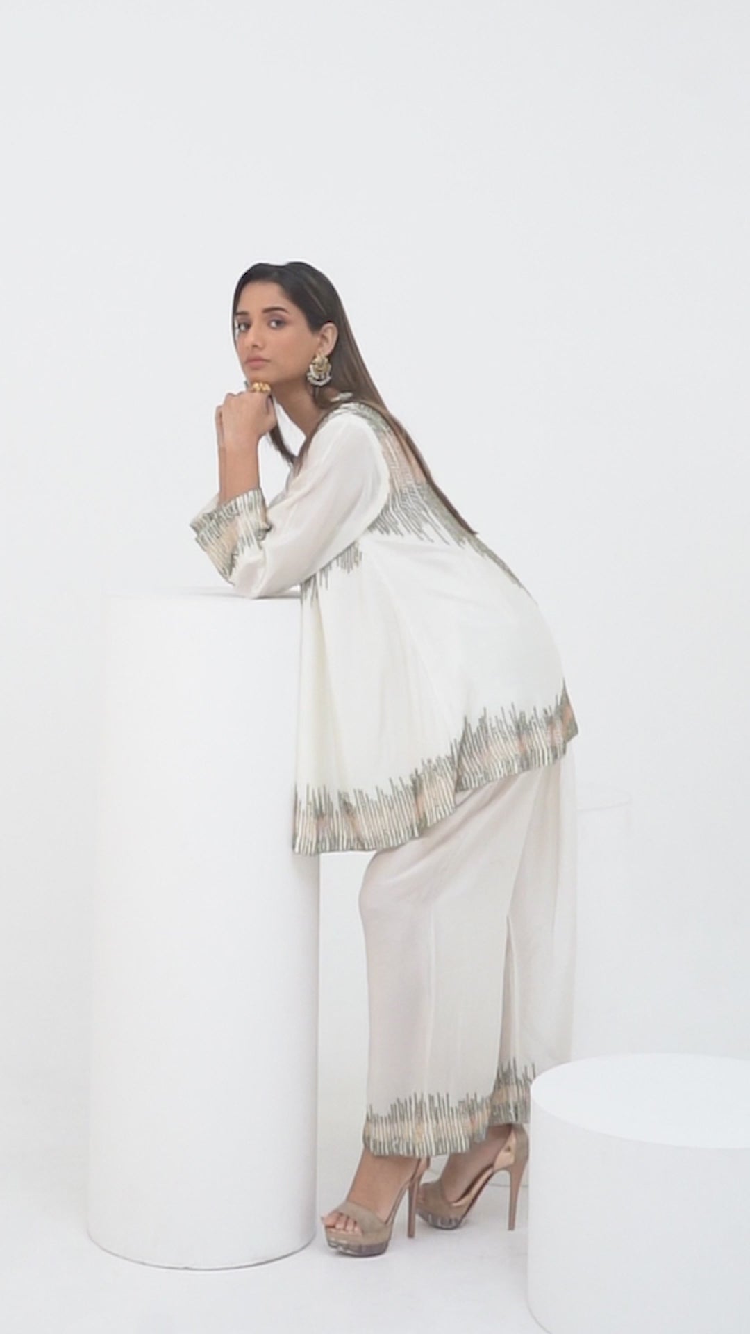 Classic Cream Embellished Swiss Georgette Co-Ord Set