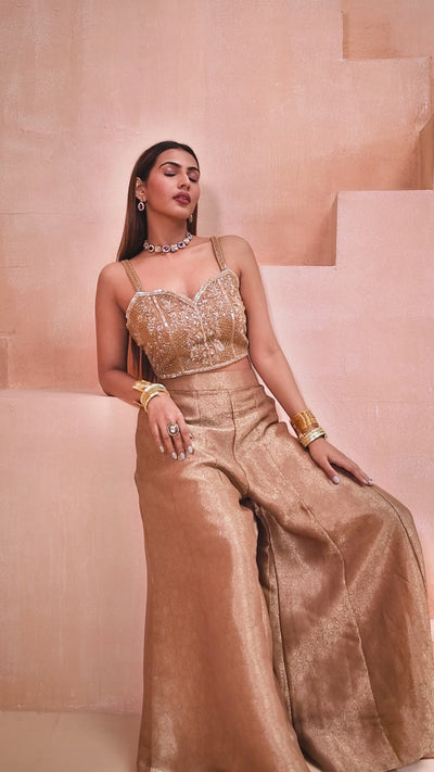 Bronze Glam Embellished Banarasi Silk Palazzo Set