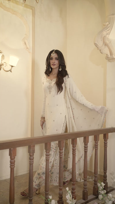 Off White Chinon Silk Kurta & Palazzo Set