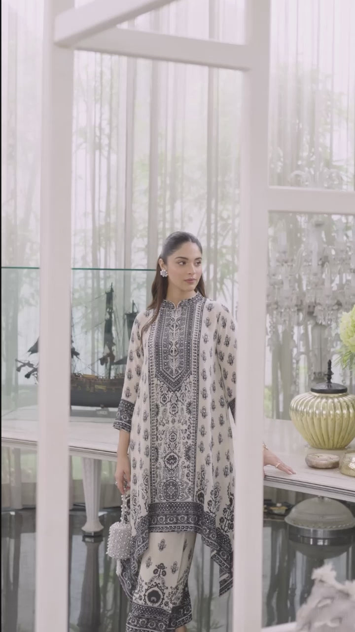 Discover effortless style with this Classic Monochrome Co-Ord Set, adorned with lively Black and white ethnic prints and sparkling sequin and stone embellishments. Its flowing design paired with printed palazzos offers a breezy, chic vibe ideal for daytime occasions or relaxed gatherings.