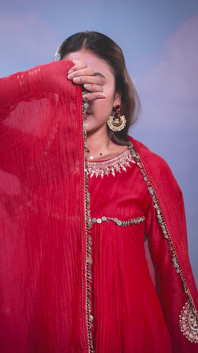 Crimson Glimmer Embellished Chanderi Silk Anarkali Set