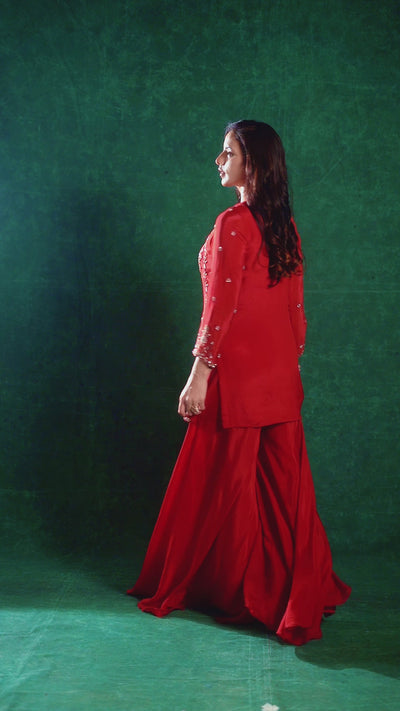Vibrant Red Embellished Chinon Silk Palazzo Set
