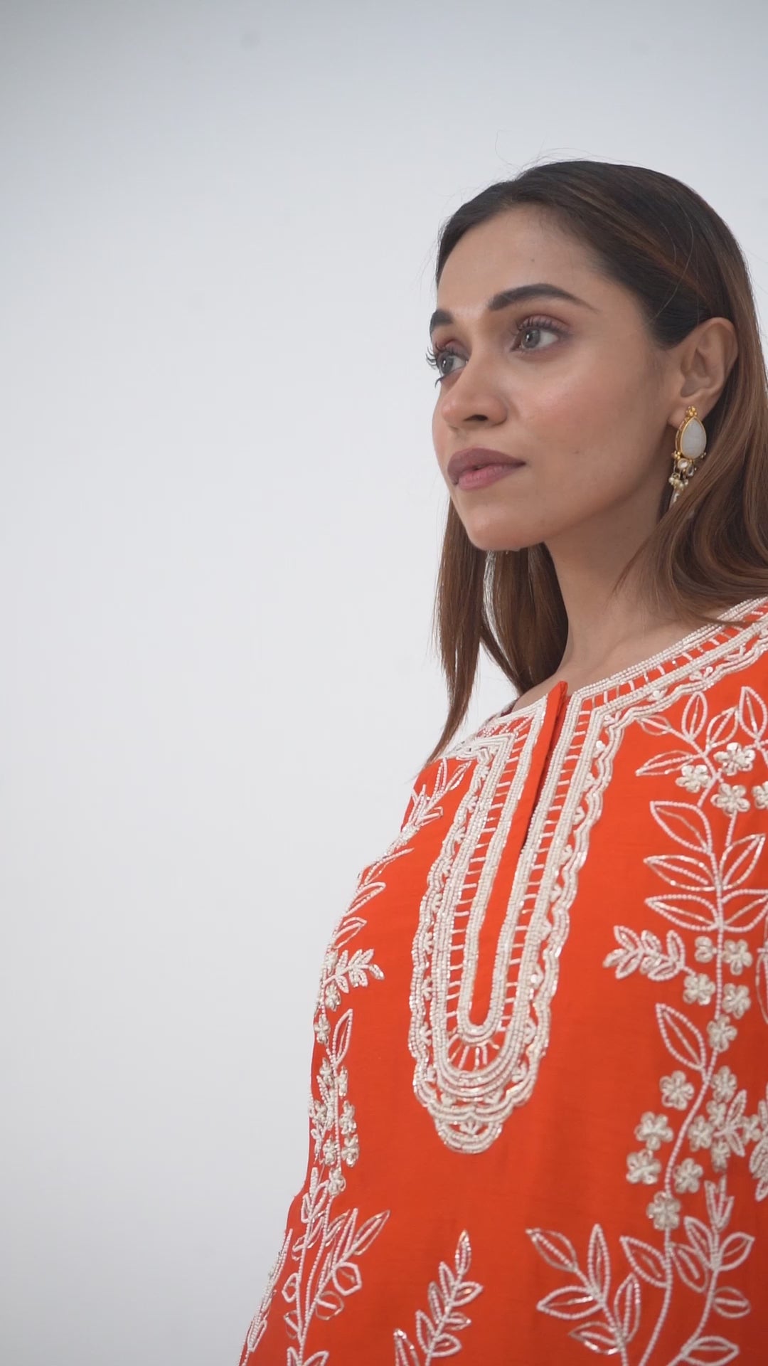 Bright Orange Embellished Raw Silk Co-Ord Set