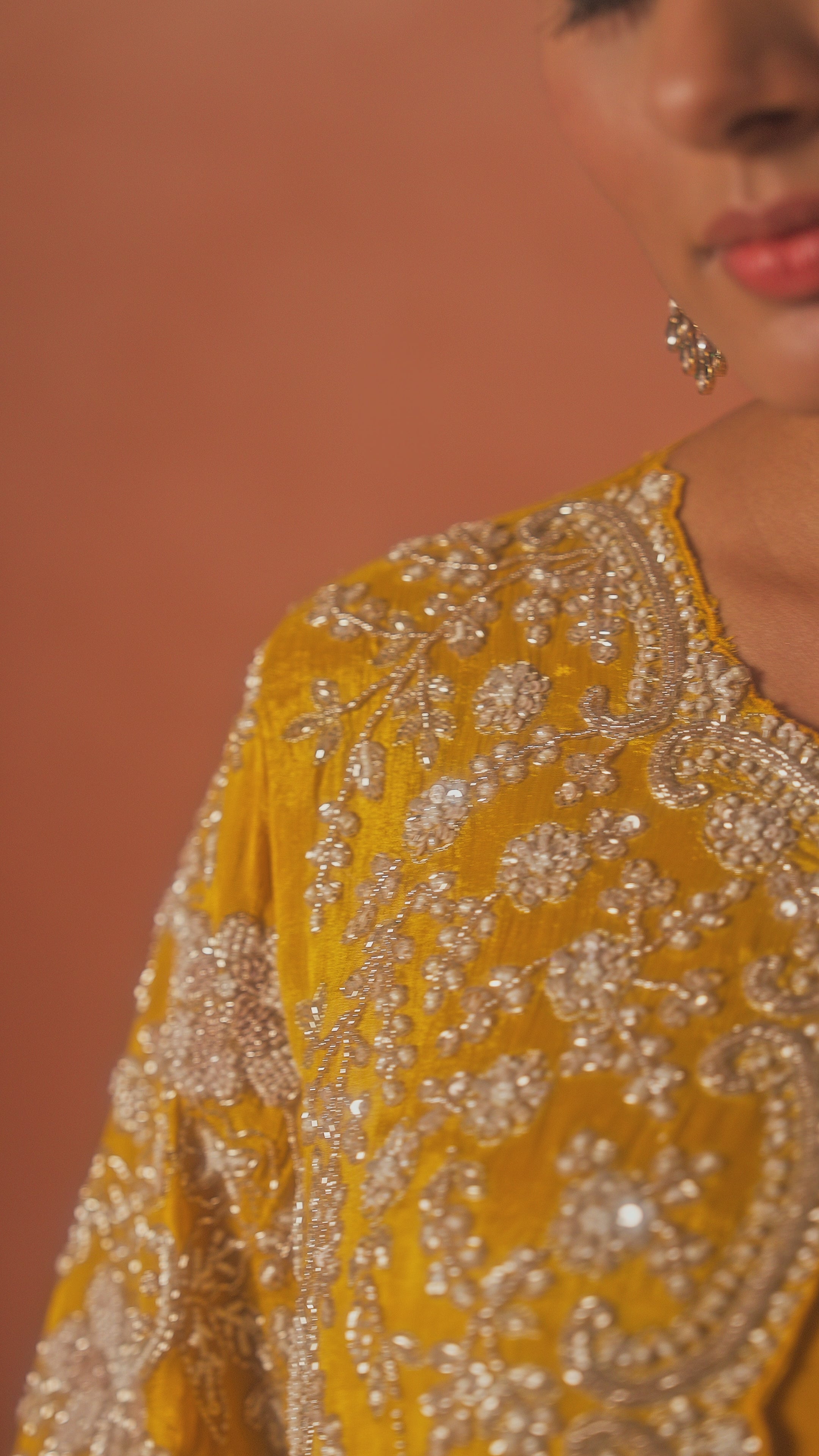 Bright Mustard Embellished Chinon Silk Skirt Set