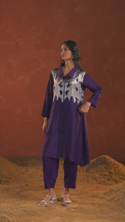 Royal Purple Embellished Raw Silk Co-Ord Set