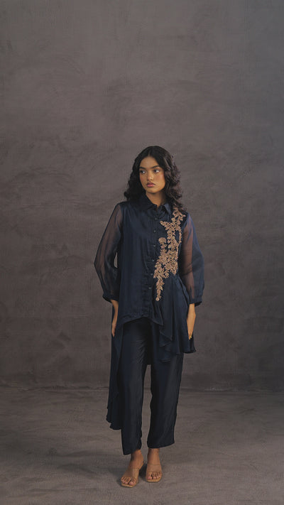 Deep Blue Embellished Satin Silk Co-Ord Set