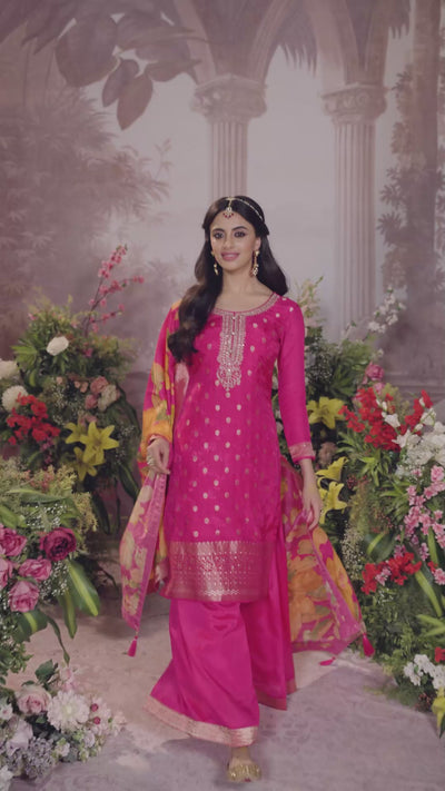 Magenta Pink Embellished Premium Silk Palazzo Set