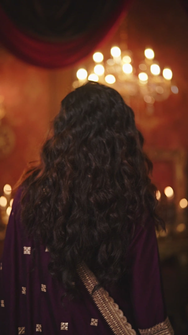 Exude timeless opulence and grace in this stunning Regal Plum Pant Set. This three-piece ensemble, crafted from luxurious premium silk, features a straight-cut kurta with an intricately hand-embroidered neckline. The look is elevated by a lavish Zari and Zardozi border at the hem, perfectly complemented by a dupatta featuring coordinating woven motifs and rich metallic borders.