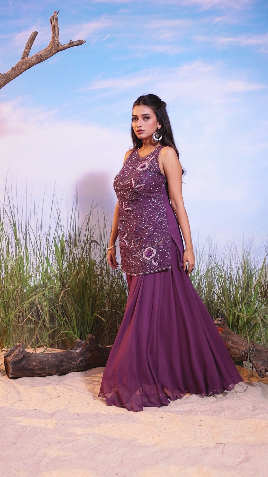 Dusty Purple Embellished Georgette Silk Palazzo Set