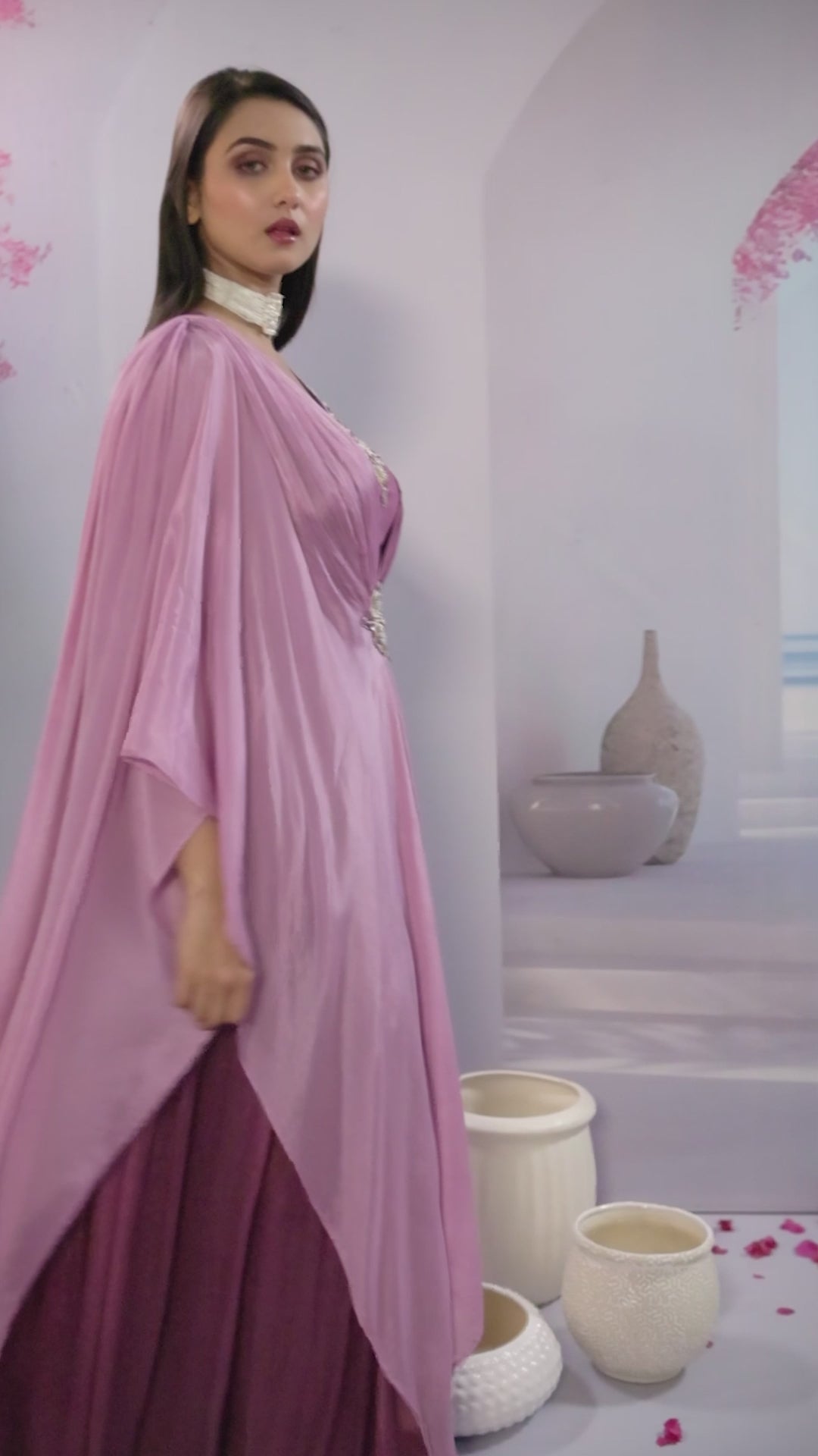 Resonates your look with style and refinement with our Pink Embellished Chinon Silk Gown. The meticulously hand-worked of sequins, cutdana and beads work on the gown showcase exquisite craftsmanship. This ensemble radiates effortless grace. Perfect for year-round festivities.