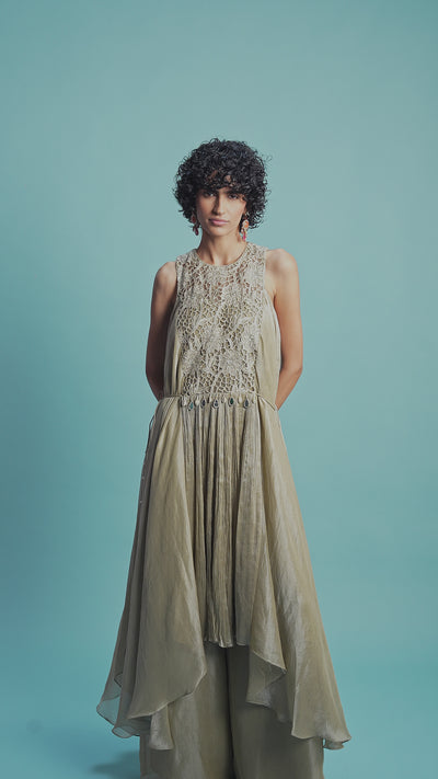 Champagne Beige Embellished Organza Silk Sharara Set