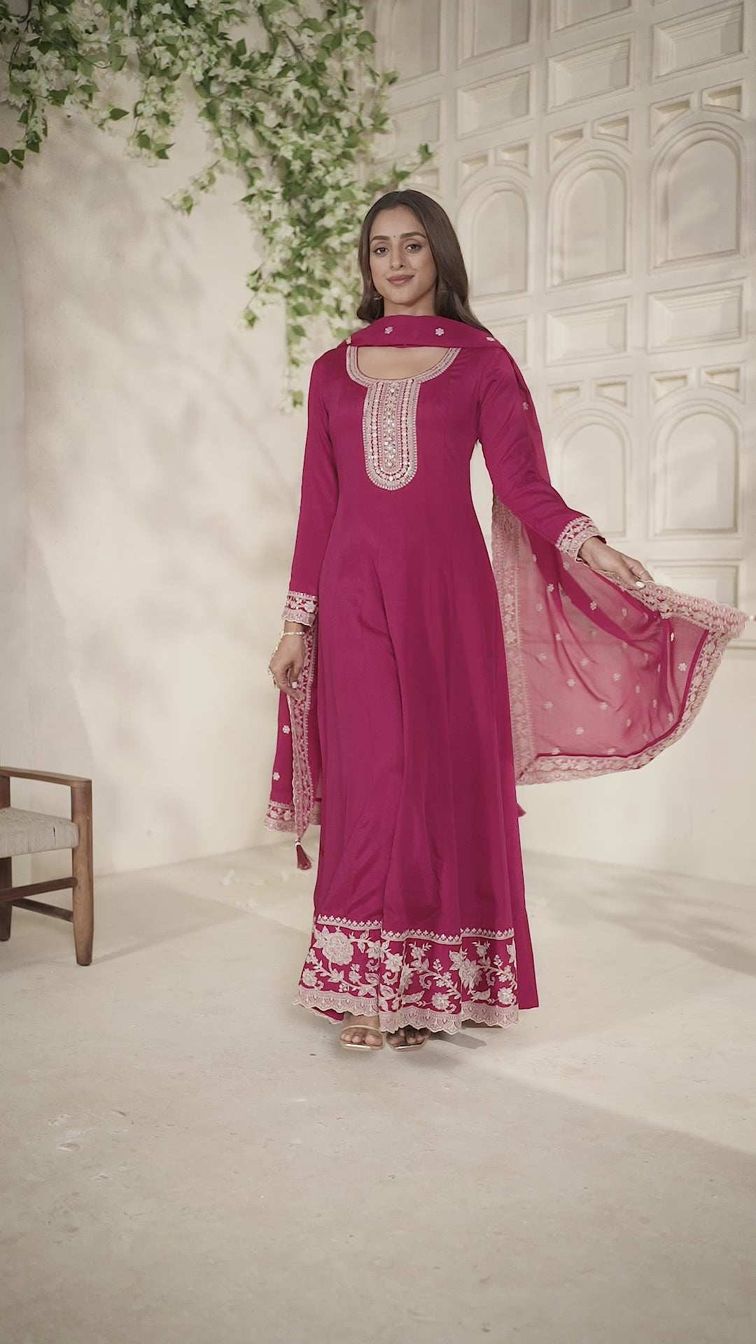 - Shine bright in this Deep Pink Embroidered Anarkali Set.