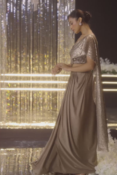 Antique Brown Embellished Imported Fabric Pre-Draped Saree