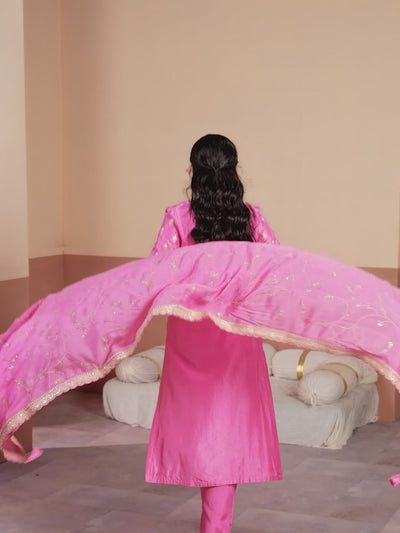 Peony Aura Embellished Dola Silk Pant Set