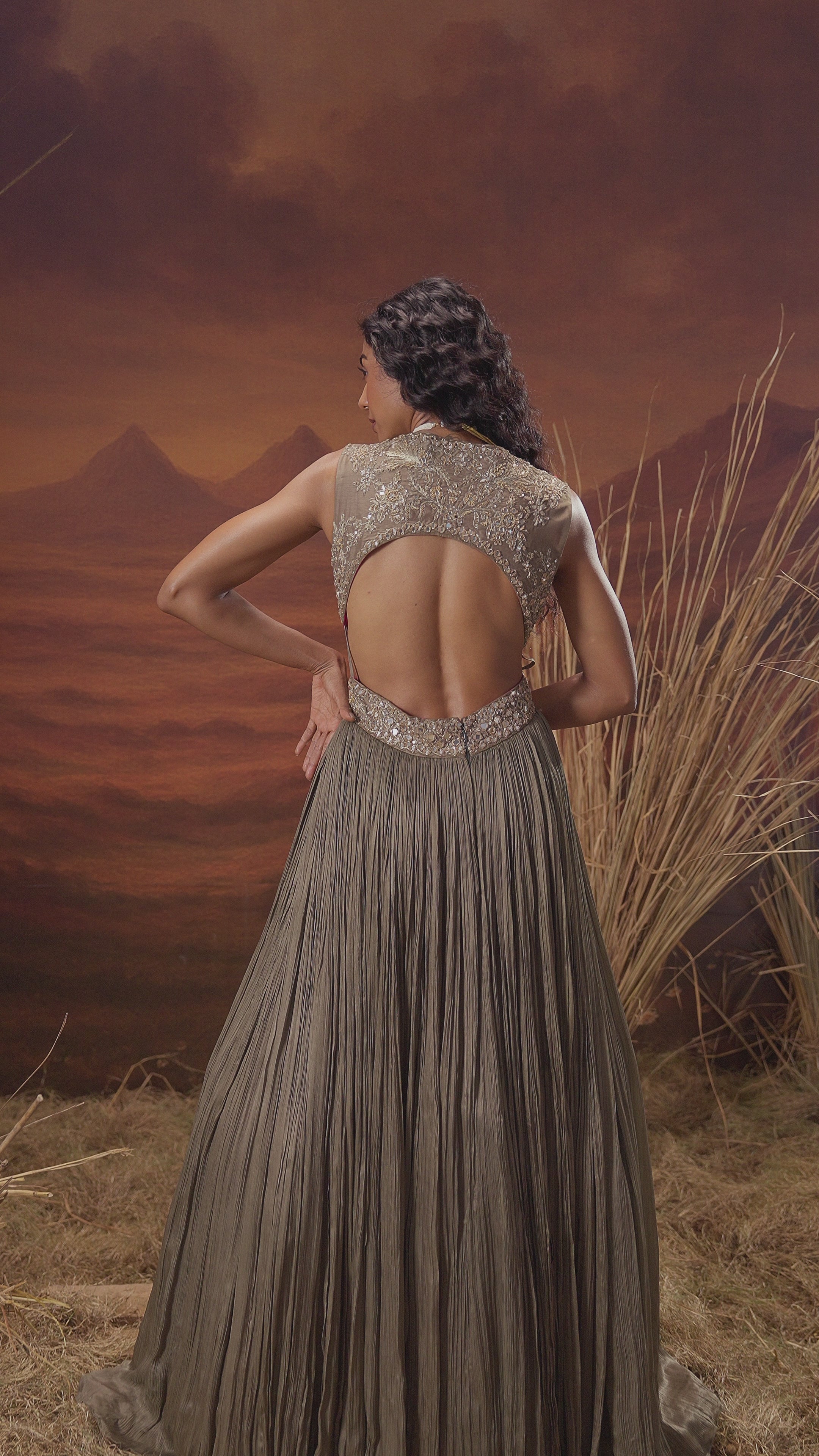 Bronze Embellished Crepe Silk Gown