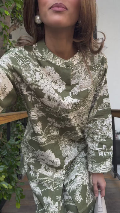 Whoosh! Our Olive Green Premium Linen Co-Ord Set, just swooped in to rescue your vacation wardrobe! Splashed with botanical prints that practically scream "take me to the beach," this playful duo makes casual hangouts instantly Instagram-worthy. The premium linen fabric keeps things breezy while you're busy looking fabulous with zero effort. Ready, set, vacation mode: activated!