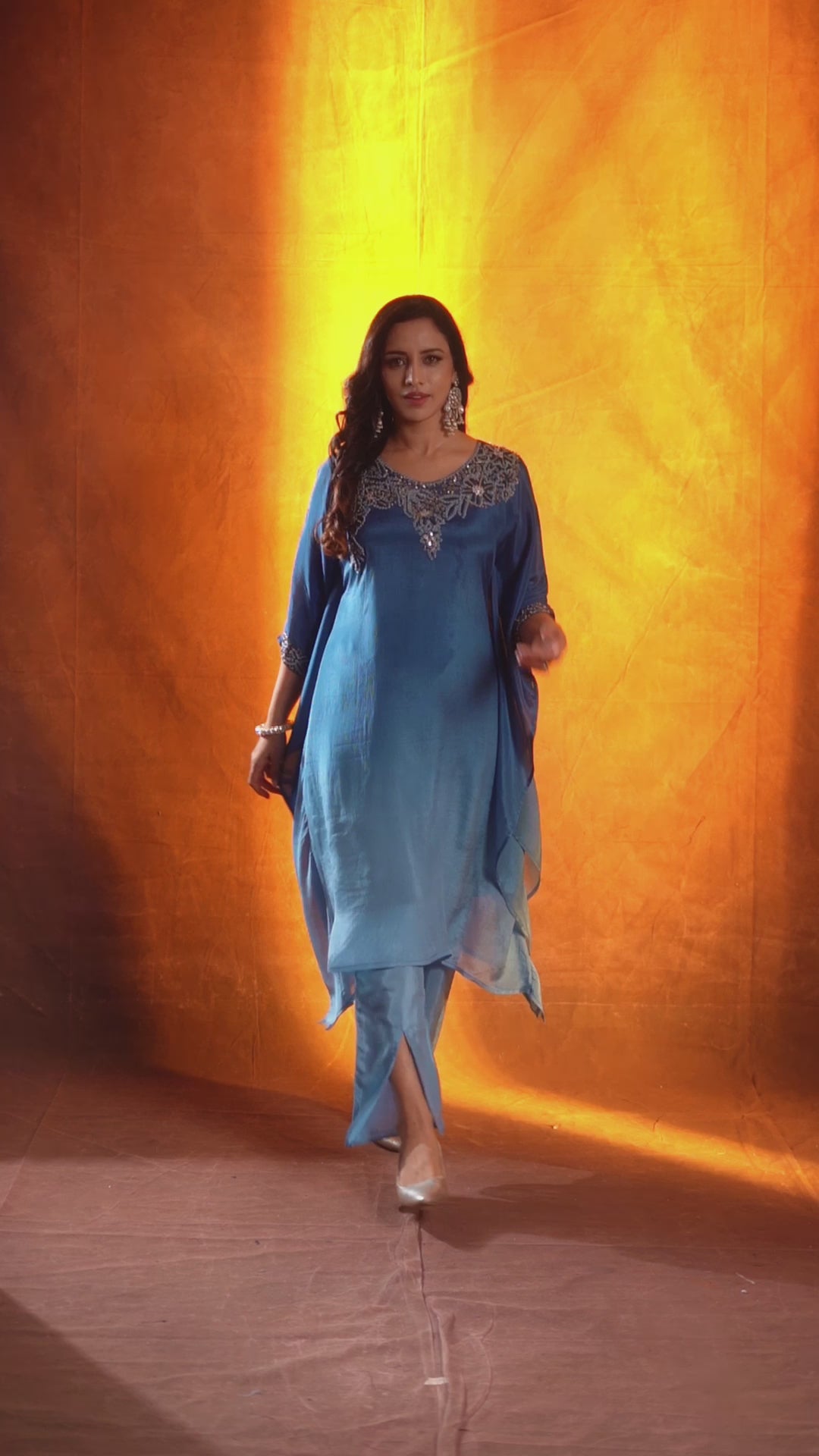 Indigo Ombre Embellished Chinon Silk Kaftan Set