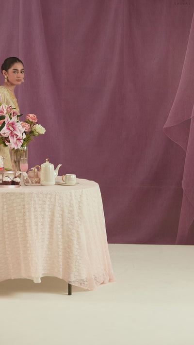 Indulge in sophisticated elegance with this exquisite two-piece Co-Ord set. Crafted from rich Brocade Silk, the ensemble features a beautifully structured top and coordinating pant in a luminous ivory hue. The subtle woven pattern of the brocade is enhanced by intricate hand-embroidery, making it perfect for refined celebrations.