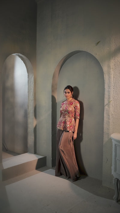 Dusty Brown Embellished Crepe Silk Palazzo Set