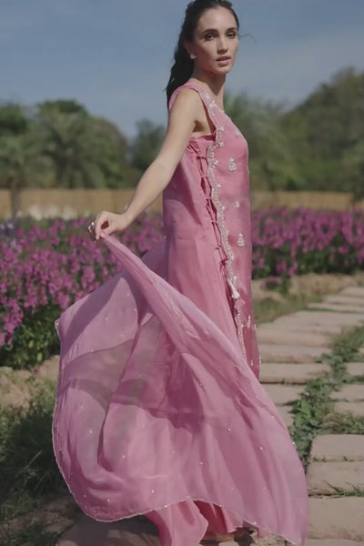 Pop Pink Embellished Soft Organza Palazzo Set