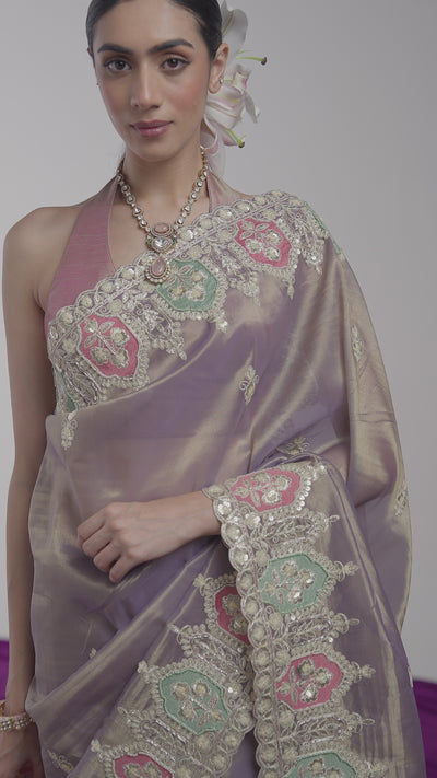 Moonlit Mauve Embellished Shimmer Tissue Silk Saree