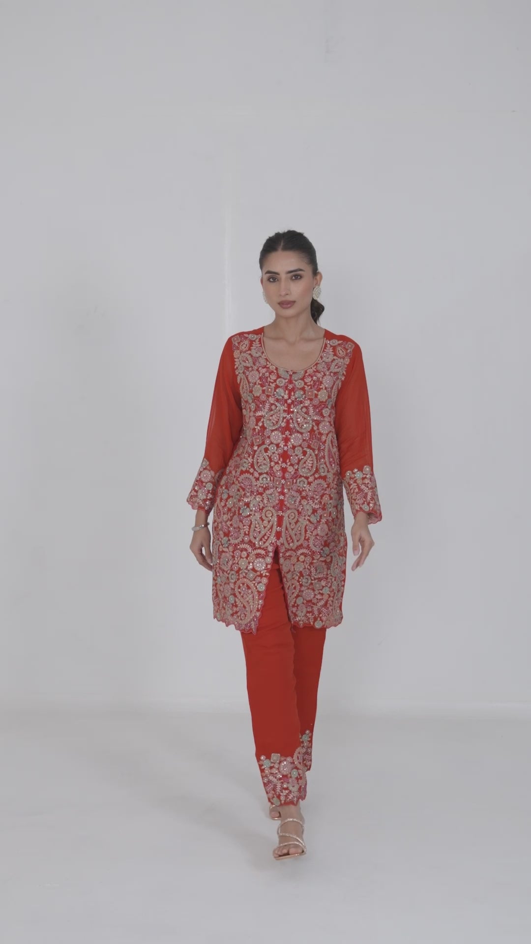 Elevate your semi-formal wardrobe with our Orange Embroidered Kurta & Pants Set. The exquisite sequin and zari handwork on the kurta adds a touch of elegance. Complete with matching pants, this set is perfect for any occasion. Experience the perfect blend of style and comfort.
