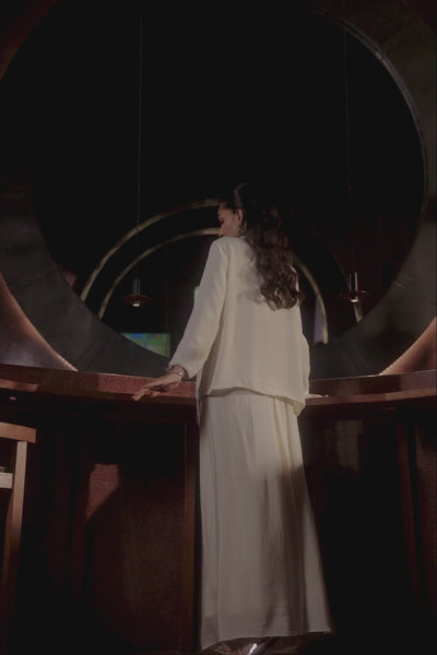Pearl White Embellished Crepe Silk Skirt Jacket Set