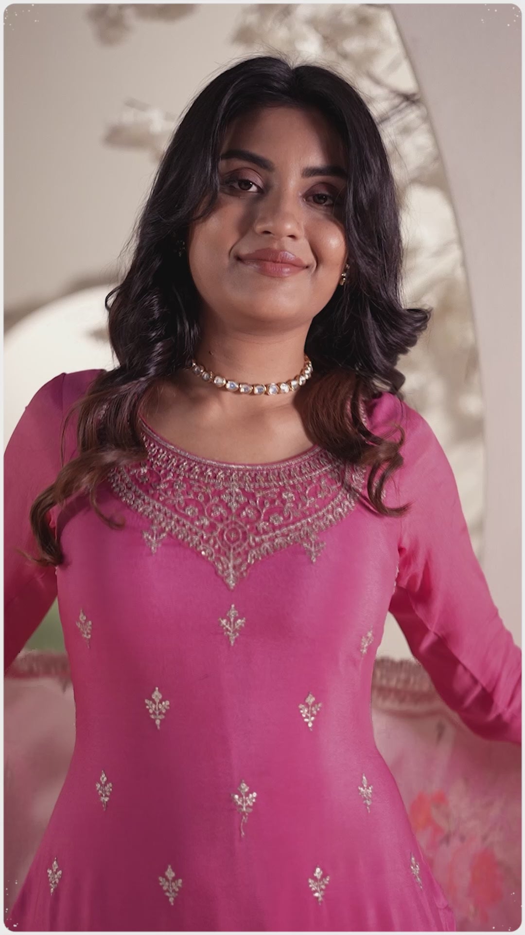 Golden Pink Chinon Silk Kurta & Palazzo Set