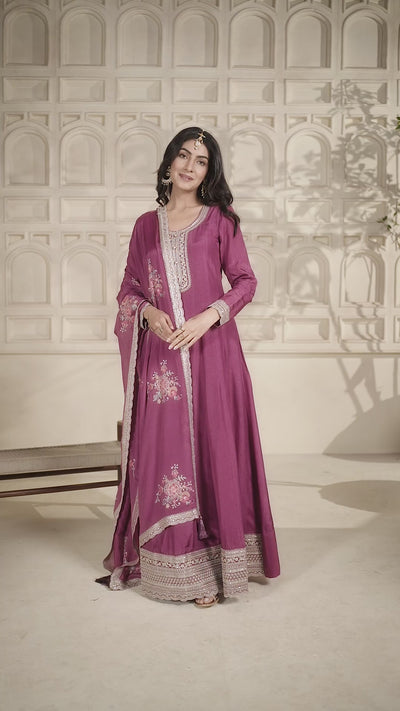 Wine Pink Dola Silk Anarkali Set