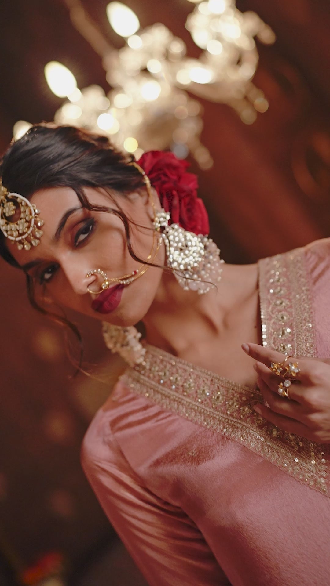 Step into elegance with our pink embellished tissue organza silk kurta pants set. The kurta is adorned with zari, aari tari and mirror work in front which gives an elegant look. Paired with matching solid premium silk pants and an embellished brocade silk dupatta with tassels on border. Perfect semi-formal events.