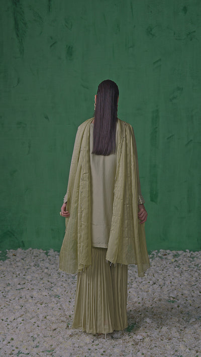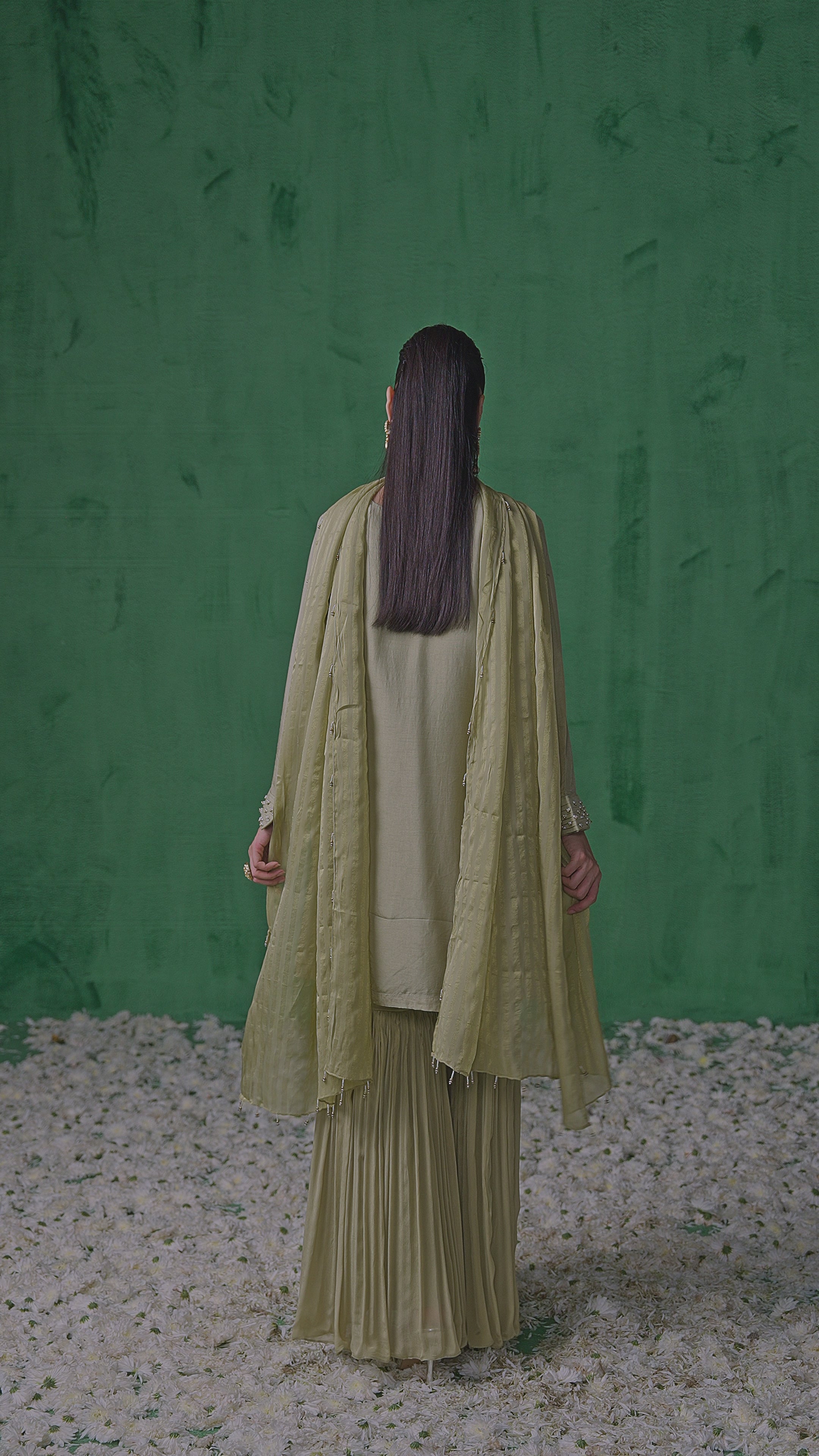 Pista Green Embellished Kurta With Sharara and Dupatta