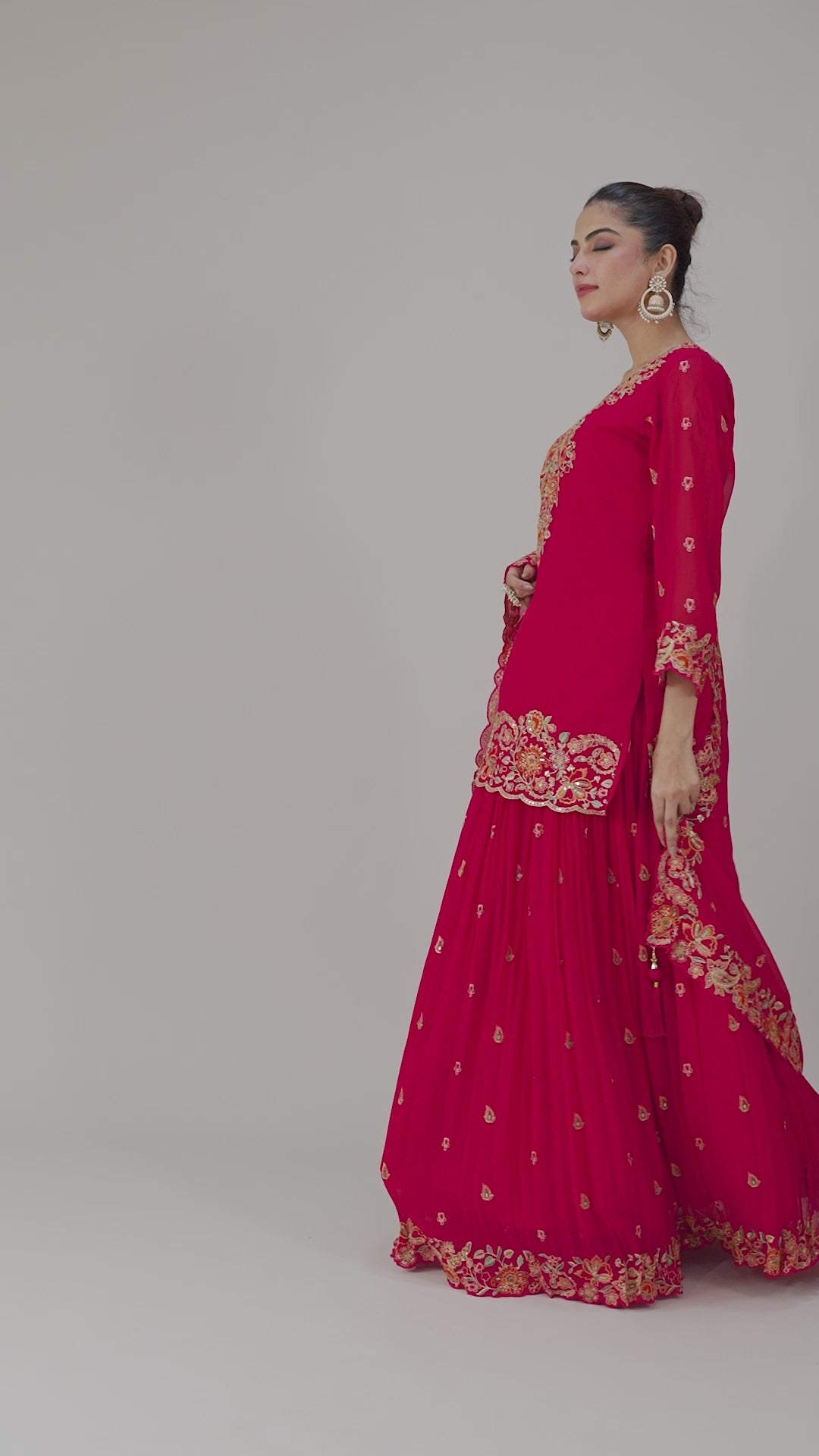 Rani Pink Embroidered Georgette Silk Lehenga Set