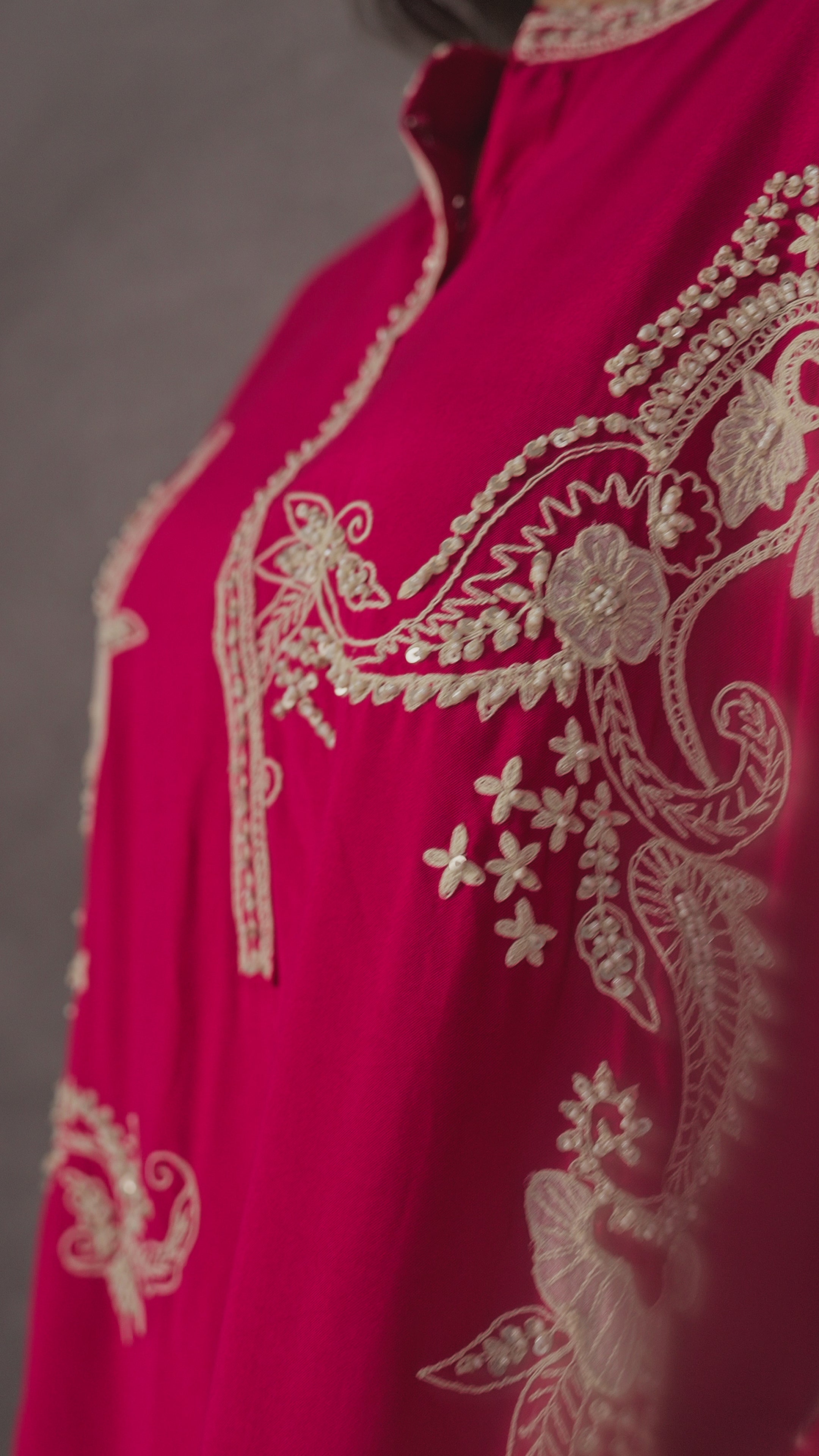 Raspberry Pink Embellished Crepe Silk Co-Ord Set