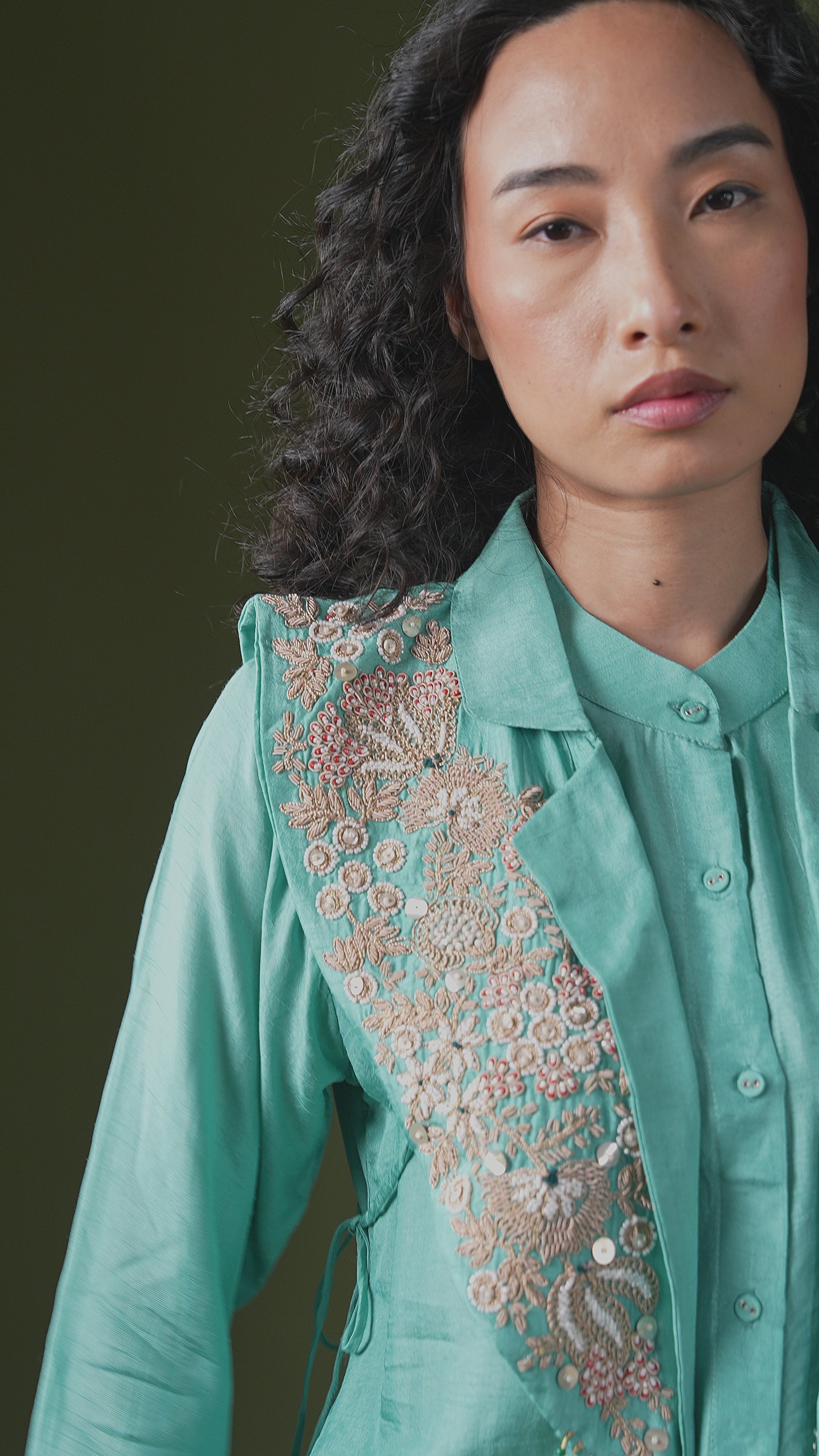 Aqua Blue Embellished Raw Silk Co-Ord Set
