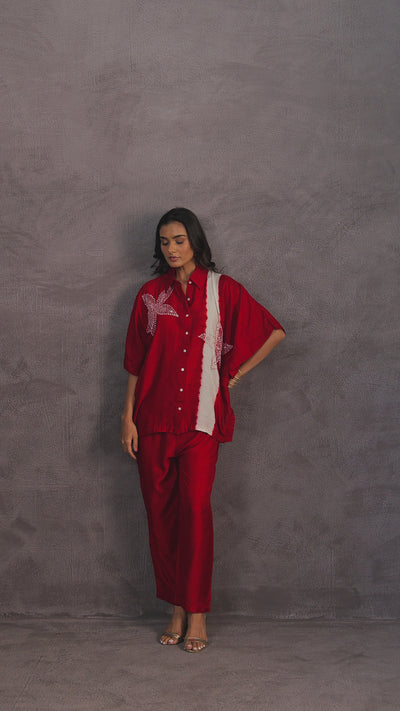 Ruby Red Embellished Raw Silk Co-Ord Set