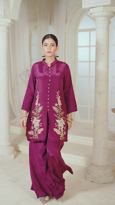 Deep Wine Embellished Crepe Silk Palazzo Set