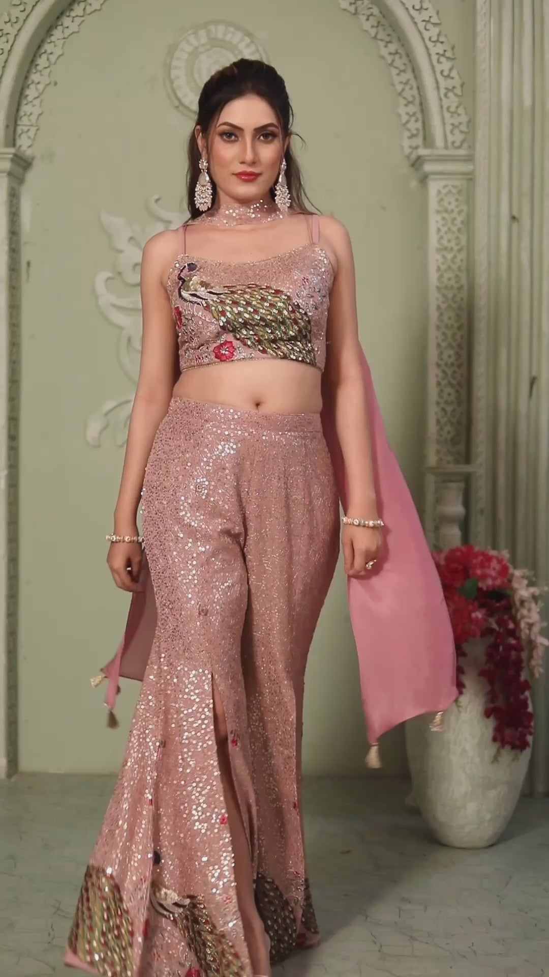 Shimmer Pink Crop Top & Palazzo Set