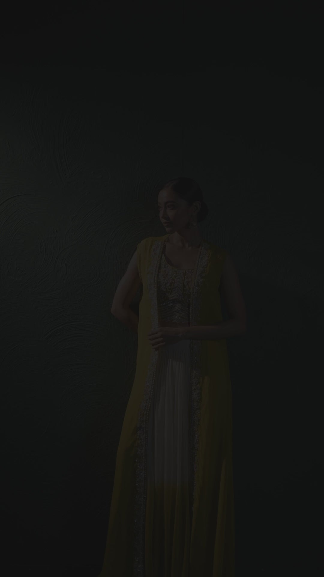 This exquisite tripartite ensemble presents a subtle pink sleeveless organza silk cape adorned with intricate silver and white zari detailing. The precision hand-embellished crop top exhibits meticulous geometric and floral artistry, harmoniously coupled with an ombre georgette silk skirt that elegantly transitions from ivory to soft pink hues. Superior craftsmanship distinguishes this collection, rendering it exceptionally appropriate for nuptial ceremonies, celebratory functions, and traditional events where refined ethnic-modern fusion aesthetics are paramount.