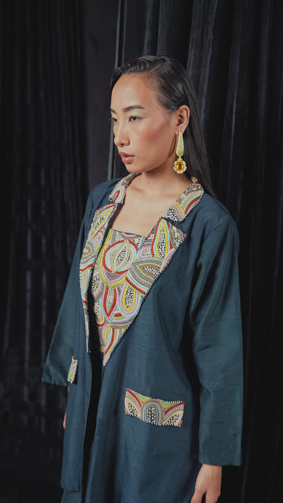 Teal Blue Embellished Raw Silk Co-Ord Set