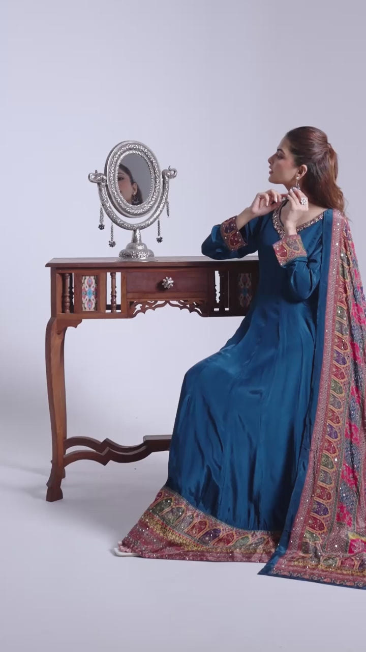 Elevate your ethnic wardrobe with timeless elegance in our Teal Blue Muslin Silk Anarkali Set. Crafted from soft, breathable muslin silk, this stunning ensemble features a gracefully flared silhouette in a rich teal blue hue, accented with intricate embroidery along the neckline and cuffs. The highlight of this set is the exquisitely printed ethnic dupatta, adorned with vibrant traditional patterns and a rich color palette that adds cultural charm and regal flair. The hemline is enhanced with detailed ethnic motifs, giving it a perfect festive finish. Ideal for festive gatherings, traditional celebrations, or elegant evening events, this set is a seamless blend of classic craft and contemporary style.