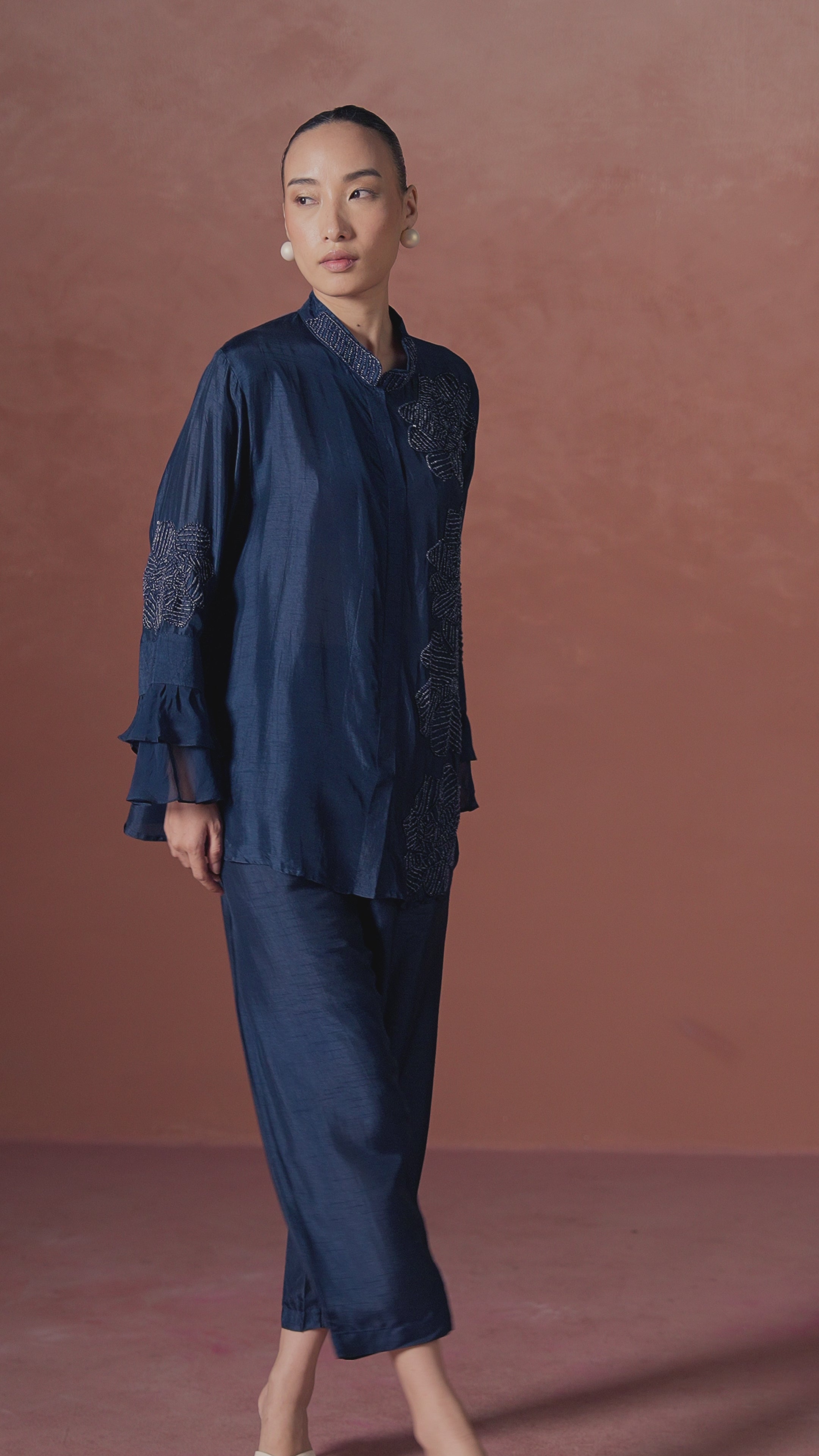 Twilight Blue Embellished Raw Silk Co-ord Set