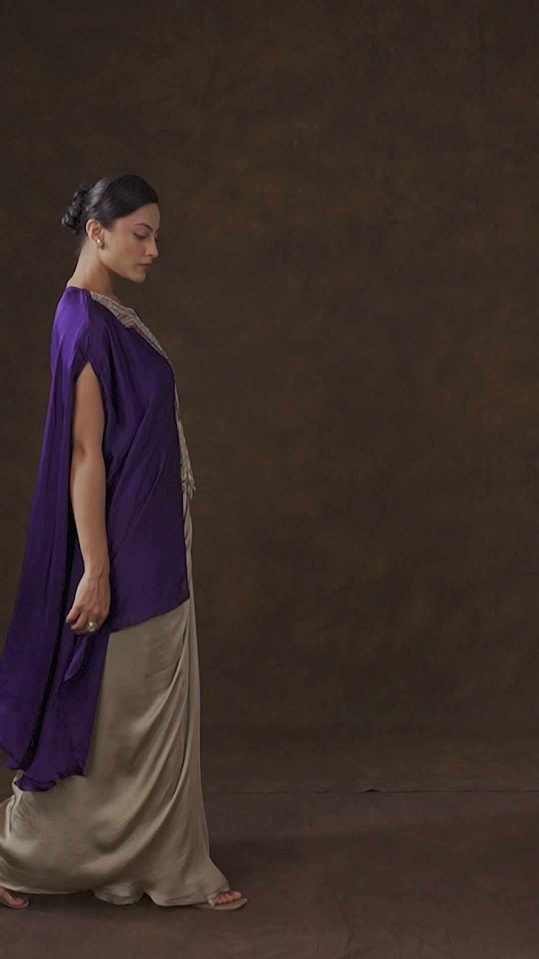 Royal Purple Embellished Satin Silk Drape Skirt Set