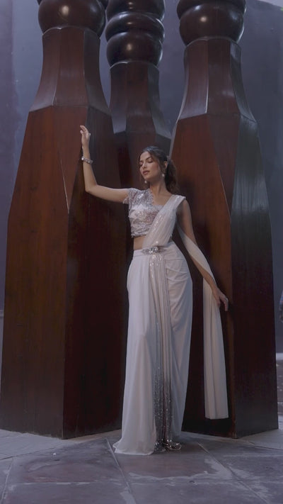 Pearl Embellished Spandex Lycra Silk Draped Saree