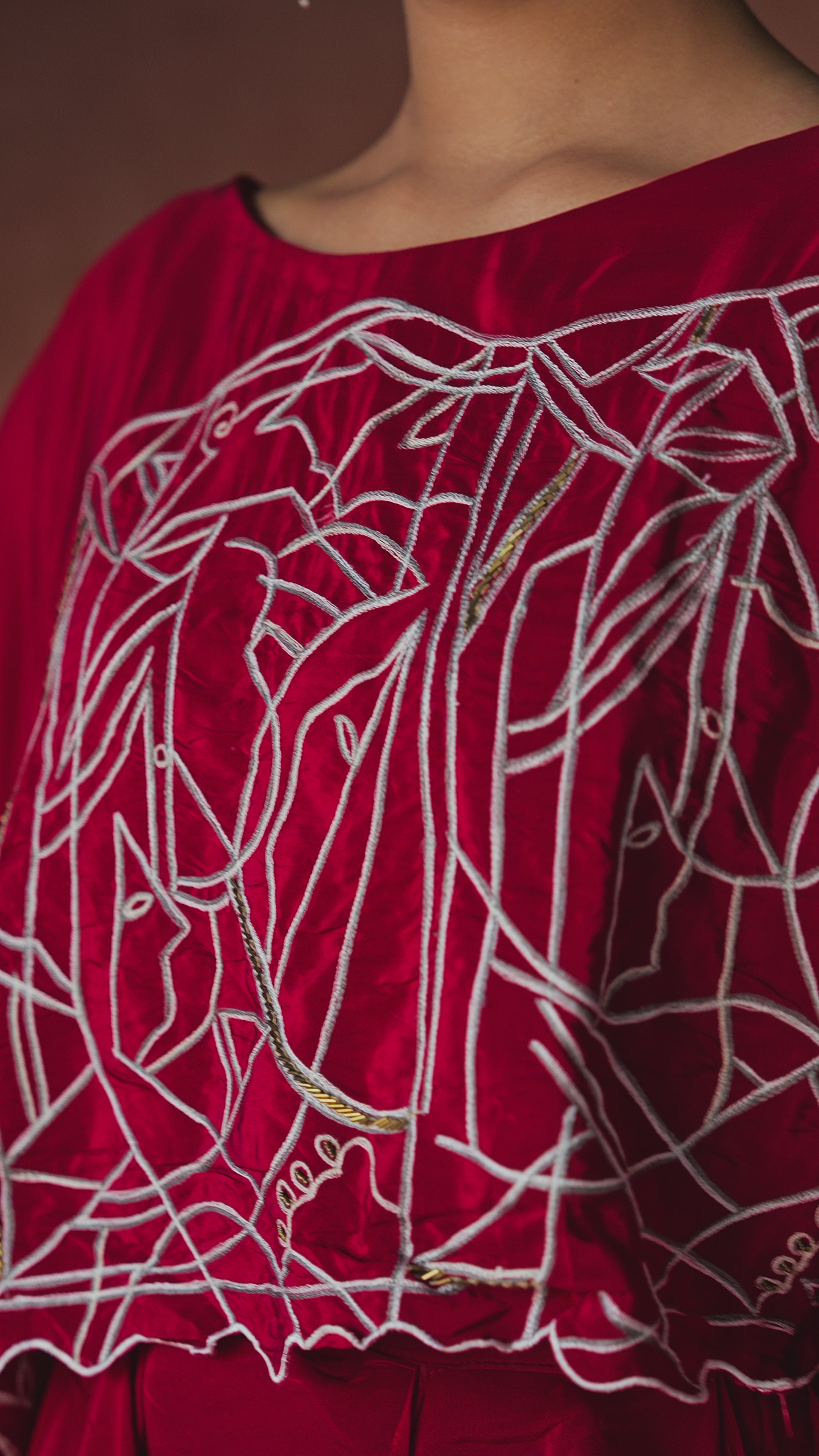 Rendered in a bold and rich wine red hue, perfect for festive or formal occasions.